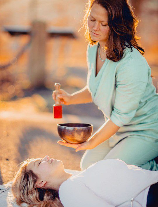 Seit 2023 arbeite ich selbständig als Klangtherapeutin in Form von Einzelsessions, Gruppenangeboten, Workshops sowohl im Eventbereich als auch zur betrieblichen Gesundheitsförderung.